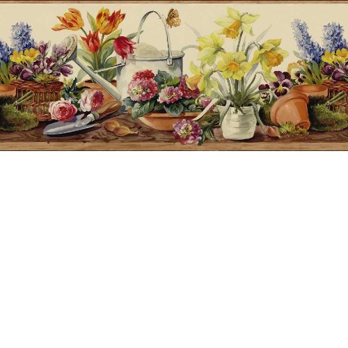 -. Feature : Purple Yellow CKB77922B SP.R.Ing Gardeners Wallpaper Border is 8 inches high and 15 feet long (4.57). / Collection name: Kitchen, Bed, Bath / Pattern repeat 16.5 inches. / Easy to hang, will not harm walls.