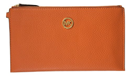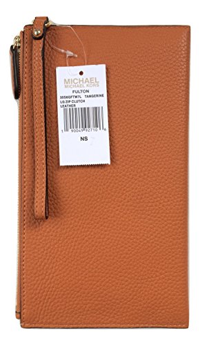 Michael Kors Fulton Large Leather Top Zip Clutch and Wristlet (Tangerine)