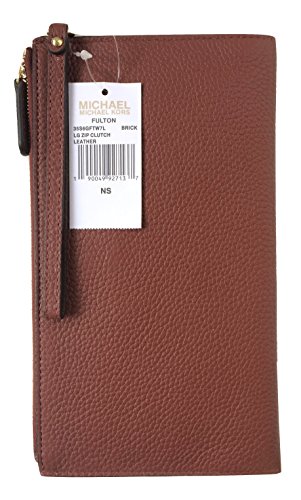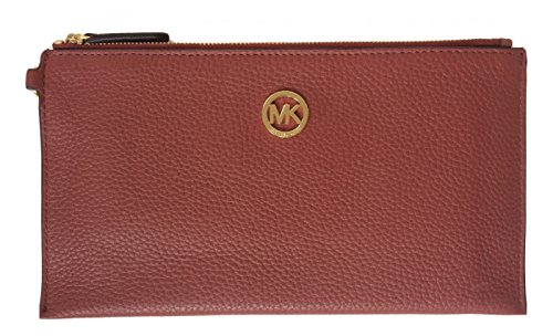 Michael Kors Fulton Large Leather Top Zip Clutch and Wristlet (Brick)