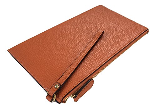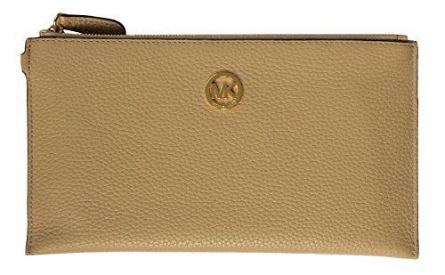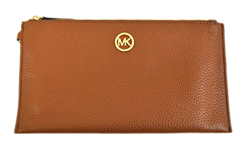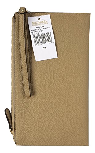 Michael Kors Fulton Large Leather Top Zip Clutch and Wristlet (Dark Camel)