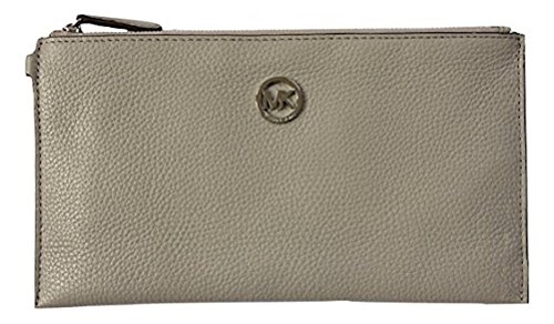 Michael Kors Fulton Large Leather Top Zip Clutch and Wristlet (Grey)