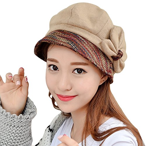 -. Feature : Material:Woolen,warm,stylish and comfortable to wear,it gives a soft and comfort touch. / Size:One size fits most of adults,Head Circumference: 57cm(Approx.22.4inch)(Please allow us 1-2cm deviations due to hand measurement) / It Protects your face from sun burn in summer.and it also can keep chill away in autumn and winter / The brim cloche hat with flower design can be more fashion and elegant,gift choice for ladies / It is an nice option as birthday or Xmas Thanksgiving Day gift or beauty accessory collection for your frineds or your family.