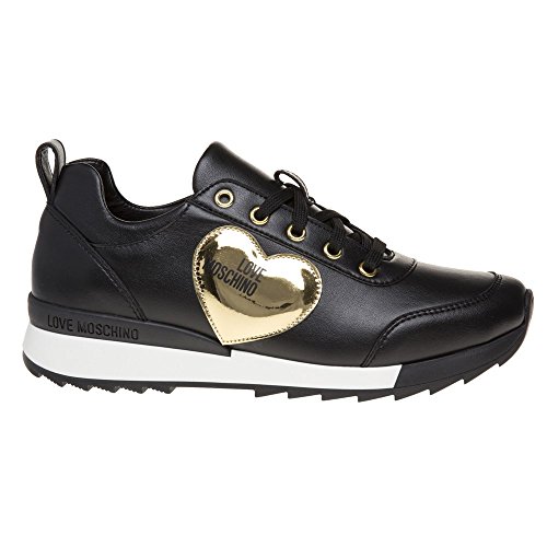 (Love Moschino)/Women's/Sports Fan Footwear/DIRECT FROM USA/Love Moschino Gold Heart Womens Sneakers Black