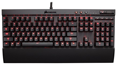 The Corsair Gaming K70 is a fully mechanical, backlit keyboard that's designed for performance gaming. The built-in Cherry MX Blue switches deliver tactile feedback with an audible click. Every key is individually lit for brilliant backlighting and easy customizability to highlight important functions. The black anodized brushed aluminum structure provides rugged durability and a professional-grade finish. Replaceable contoured keycaps make it easier to find critical WASD keys-even in dim light. Plus the 104 Key Roll-over on USB and 100% Anti-Ghosting mean that every key you touch translates directly into the game.Feature