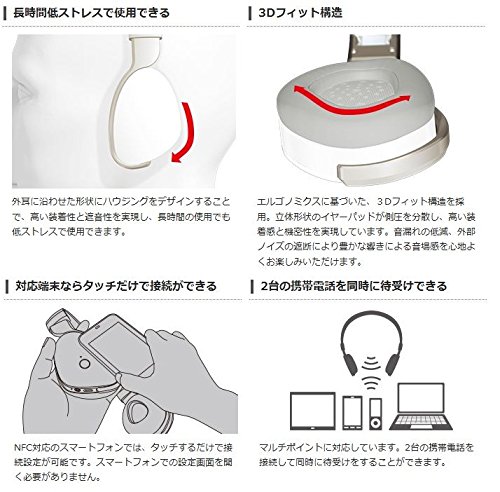 -. Feature : 出力:Bluetooth power class2 / 変調方式:FHSS(周波数ホッピング方式スペクトラム拡散) / 対応Bluetoothプロファイル:HFP, HSP, A2DP, AVRCP / A2DPの対応コーデック:SBC, AAC, aptX / A2DPの対応コンテンツ保護:SCMS-T / 最大登録可能台数:8台 / マルチポイント(同時待受け):対応 / NFC:対応 / 連続再生最大時間:SBC:25時間,AAC:24時間,aptX:22時間 / 連続通話最大時間:30時間 / 連続待受最大時間:最大約300時間 / 電源:5V(USB給電) / 内蔵バッテリー:リチウムポリマー充電池 / 充電時間:約2時間 / 入力端子:microUSB(充電用), Φ3.5mmステレオミニジャック(AUX接続用) / 外形寸法(幅×奥行き×高さ):178×64×190 mm(突起部除く) / 質量:約225g / 本体カラー:ブラック / 保証期間:1年