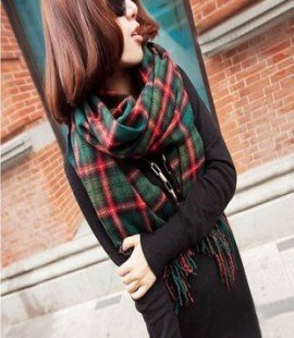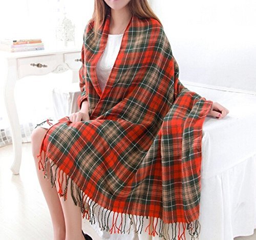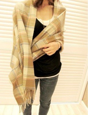 Xinliya Cashmere Large Chequered Plaid Checked Tartan Scarf Wrap Shawl