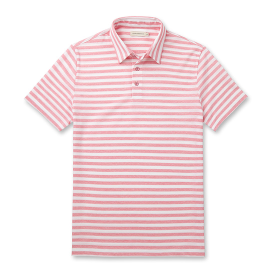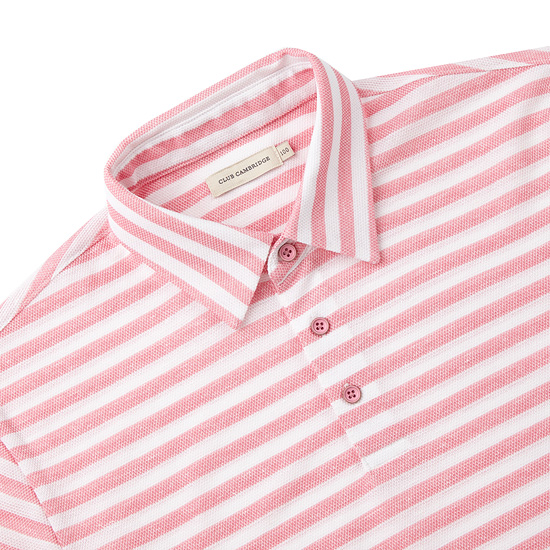 - 소프트한 컬러 스트라이프 패턴을 적용한 남성 피케 티셔츠.