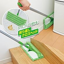 「3M スコッチ・ブライト マイクロファイバーモップ FM-F1J」の折り返しクロスヘッドは、折り返し部分を使うことで階段の段差や家具のすき間、フローリングの端などもしっかりと拭くことができます。ヘッドを立てれば、こびりつき汚れもゴシゴシ拭けます。モップ本体に付属の着脱式「ゴミかき取りクシ」は、クロスに絡みついた、毛やゴミをかき取るのに便利で、お手入れもラク。さらに、ハンドル部分は伸縮式なので、ラクな姿勢でお掃除ができます(伸縮長さ約74cm~123cm)。また、マイクロファイバークロスを交換するときは、専用の「3M スコッチ・ブライト マイクロファイバーモップ取替え用クロス FM-F1JR」をご用意しています。
