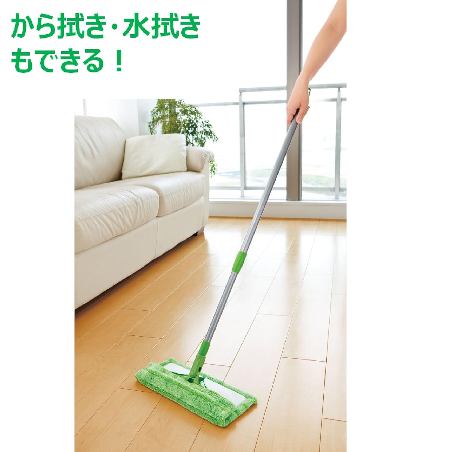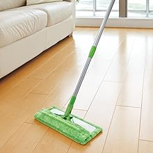 「3M スコッチ・ブライト マイクロファイバーモップ」シリーズは、クロス部分にスコッチブライト独自の2種類のマイクロファイバーを使用。極細ファイバーがホコリや油汚れを取り、中細ファイバーがこびりついた汚れを取ります。また、フローリングやフロアマットについた汚れの種類に合わせて、カラ拭き、水拭きどちらにも使えます。