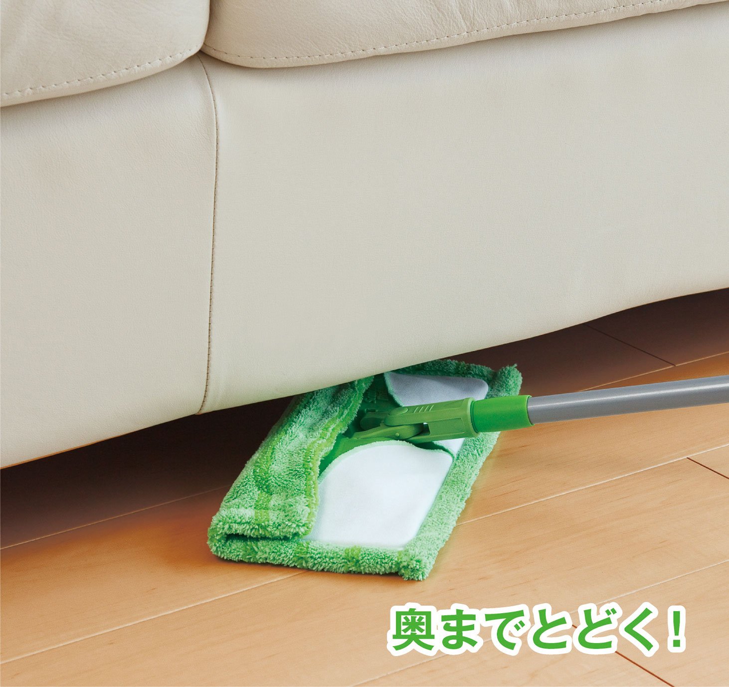 「スコッチ・ブライト マイクロファイバーモップ ベーシックタイプ FM-B」は、ハンドルとヘッドをつなぐ部分に360度動くボールジョイントを採用。手が届きづらい家具の下やすき間でも、奥までスイスイ入り込んでゴミやホコリをキャッチします。ハンドル部分は伸縮式なので、ラクな姿勢でお掃除ができます(伸縮長さ約82cm~131cm)。また、マイクロファイバークロスを交換するときは、専用の「スコッチ・ブライト マイクロファイバーモップ ベーシックタイプ取替え用クロス FM-BR」をご用意しています。