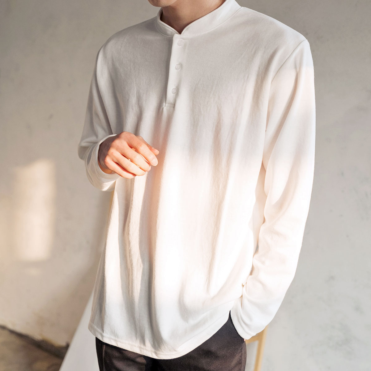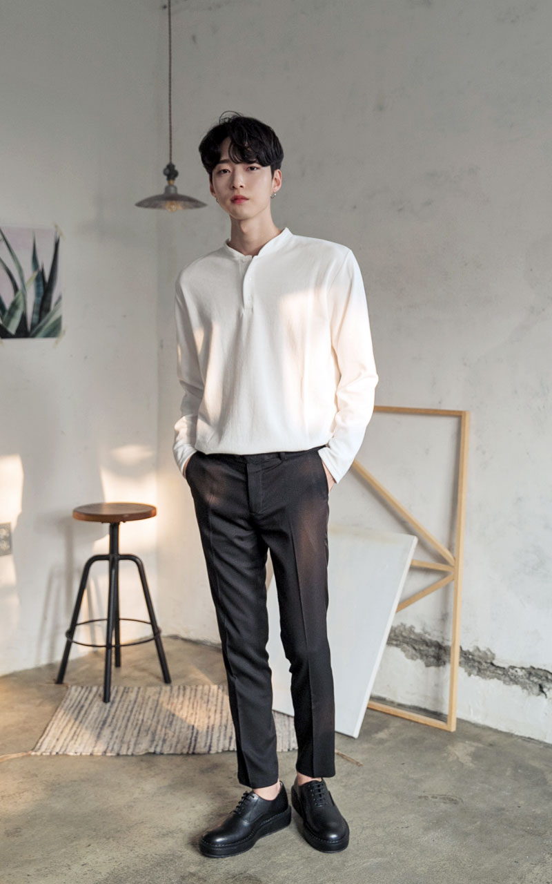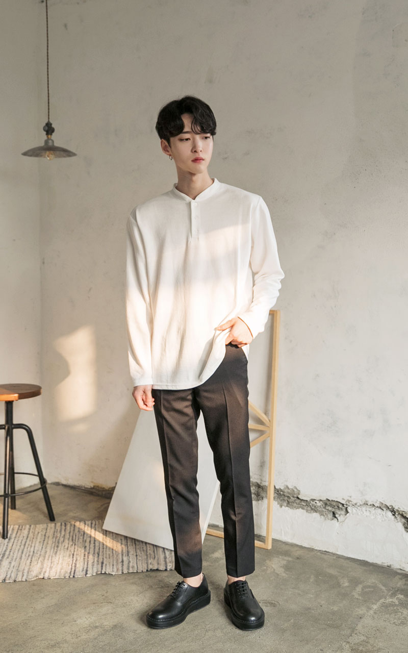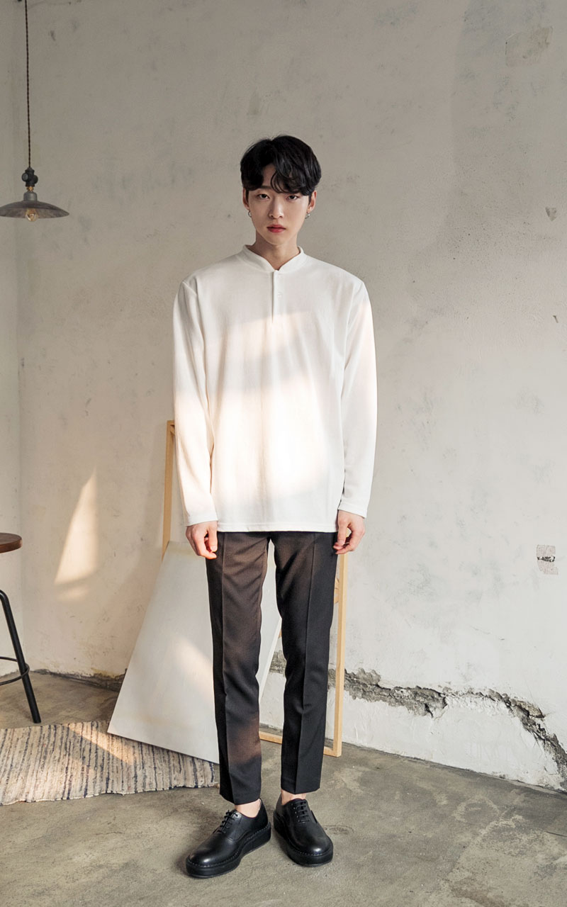심플 싱글 헨리넥 티셔츠