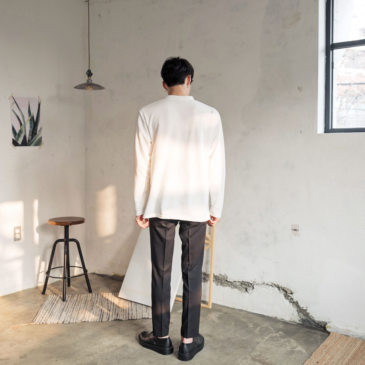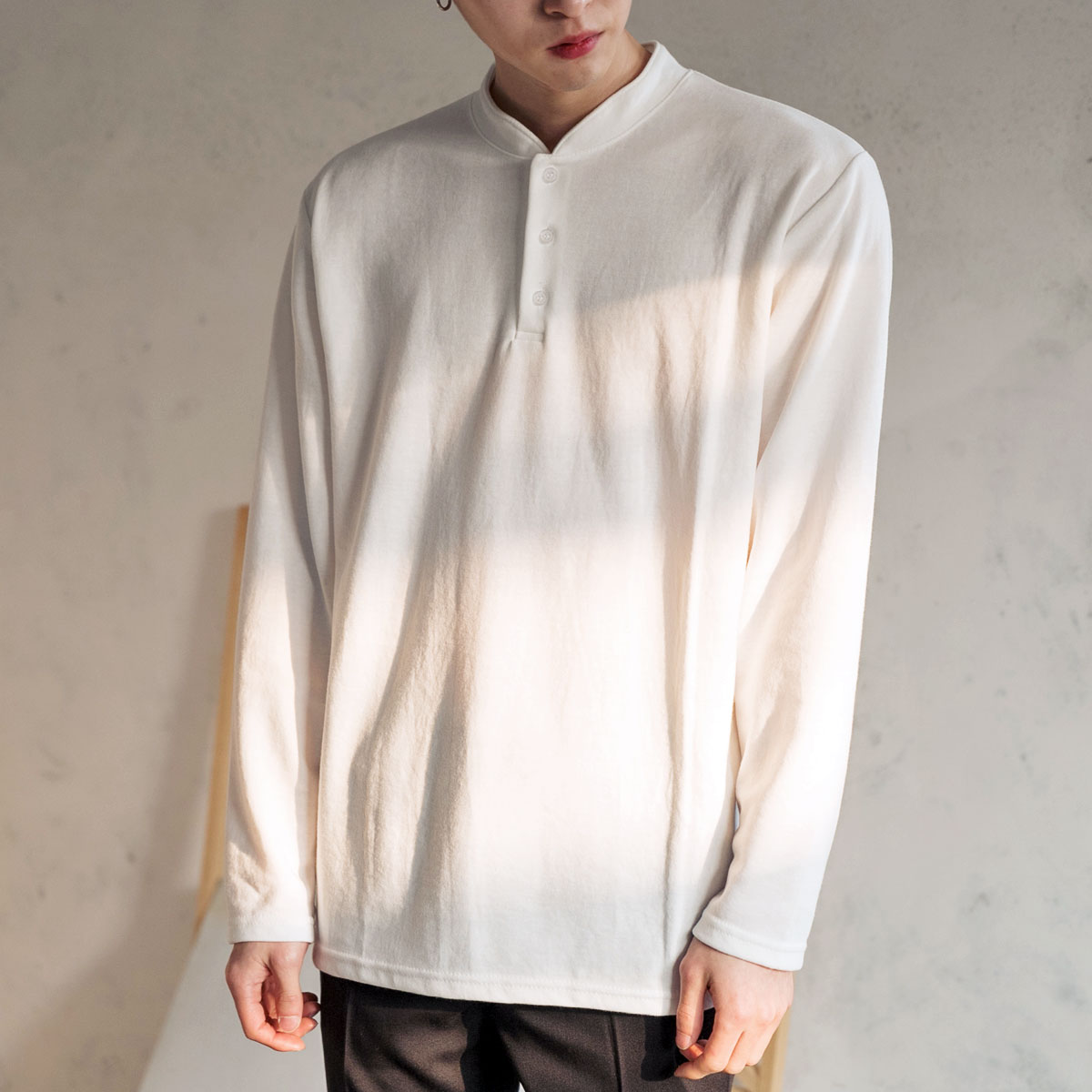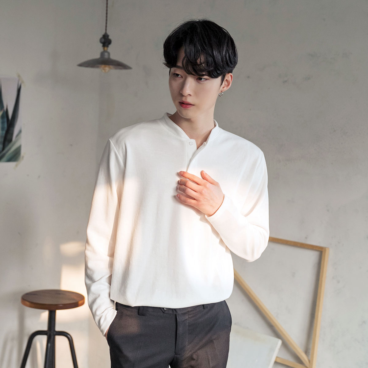 심플 싱글 헨리넥 티셔츠