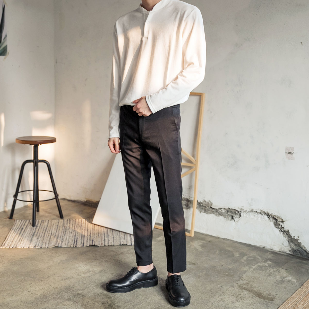 주로 슬랙스 면바지에 배치하면 심플하고