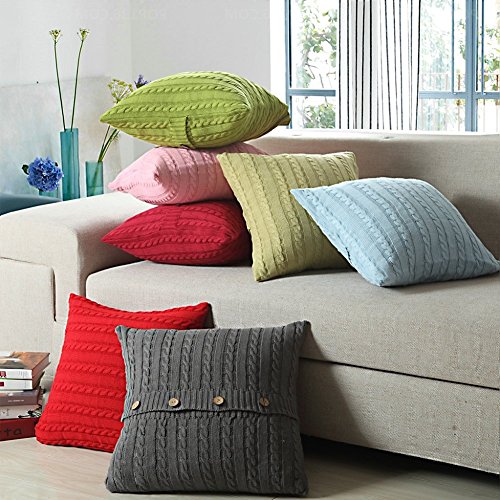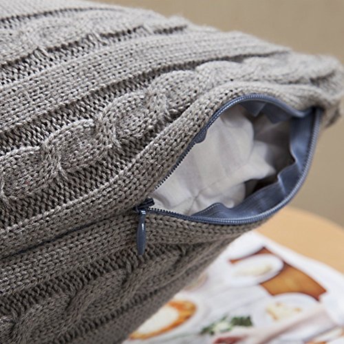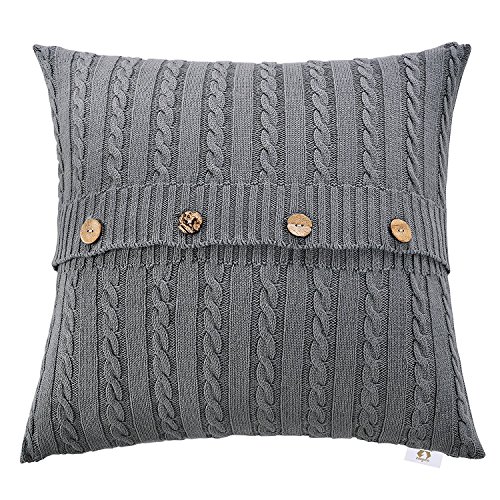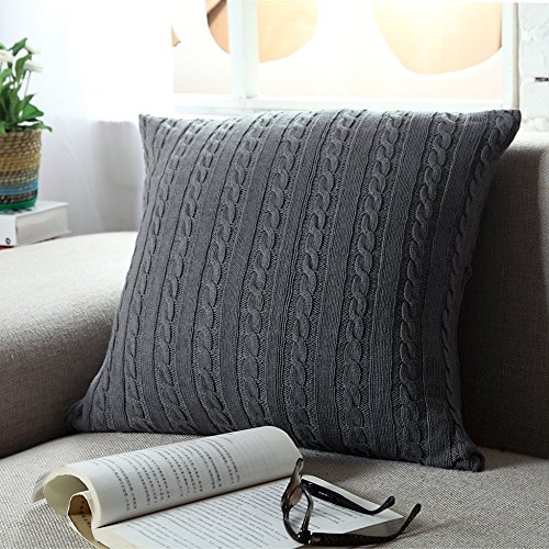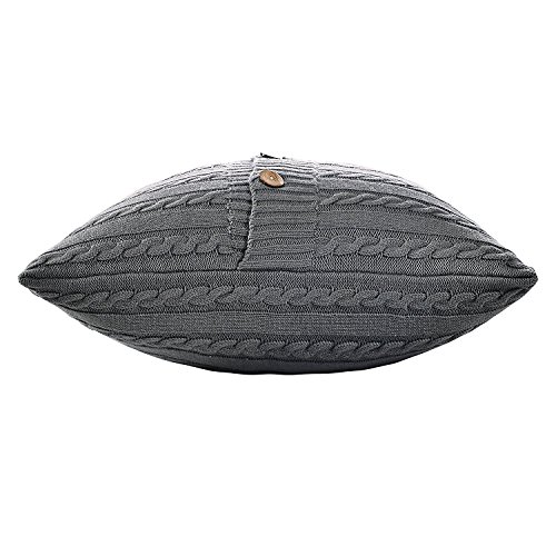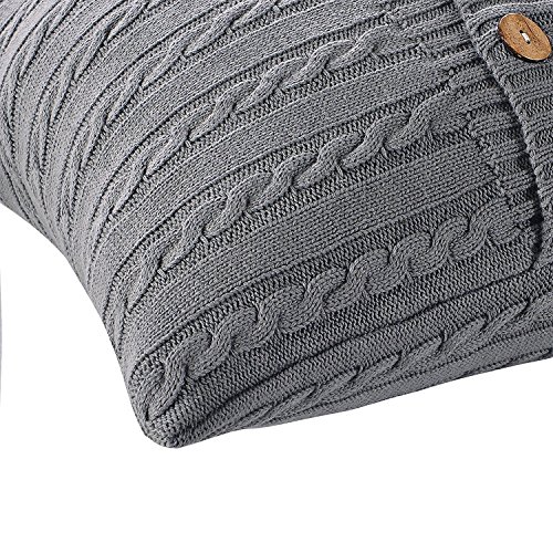 Zuanma single Cable Knit Throw Pillow Case Size 18 x 18 Inch US-Euro Retro Style Palace Cushion cover For Home Decor 100%Cotton Warm & Super Soft Without Filling (Gray)