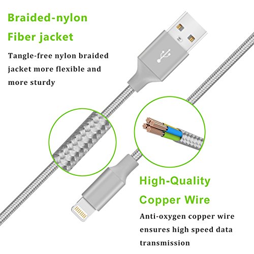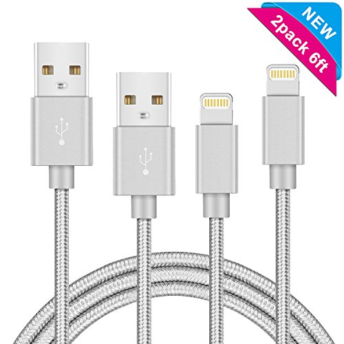 iPhone Cable Nikolable 2pcs 6ft Tangle Free Nylon Braided 8 Pin Durable Cable Charging Cord for iPhone 7 7 Plus 6 6s 6 Plus 6s Plus SE 5c 5s 5 iPad Air Mini iPod Nano Touch (Gray)