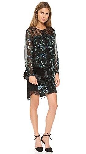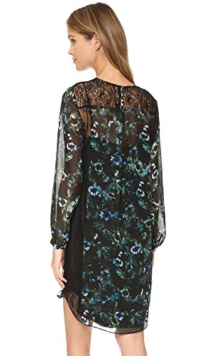 Sheer lace outlines the floral silk panels on this feminine Haute Hippie dress. Sheer blouson sleeves. Buttoned keyhole. Optional slip-dress lining.