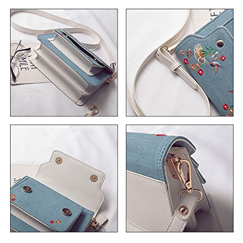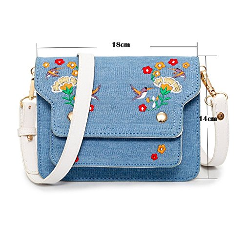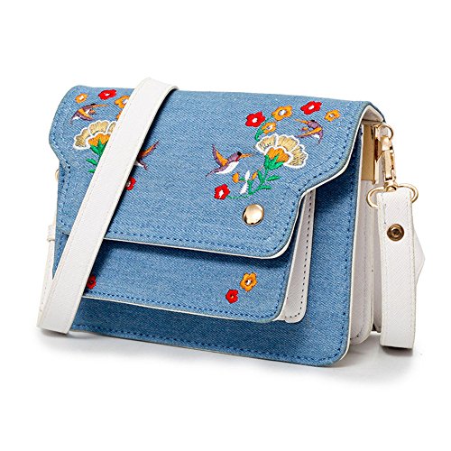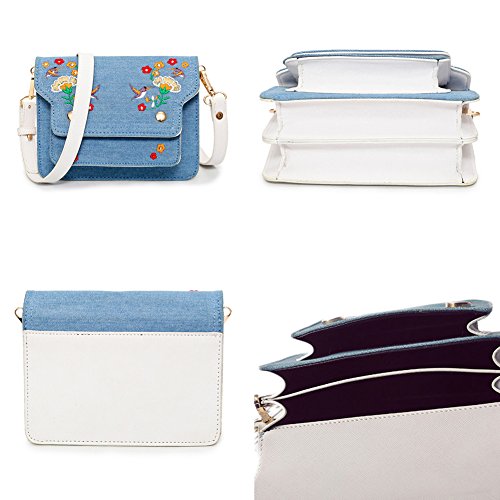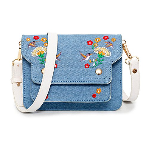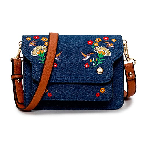 -. Brand : Besthome Fashion -. Department : womens -. Feature : Retro floral embroidery, quality denim cloth and PU leather patch / Adjustable shoulder straps / 3 Inner compartments,Enough Space for your daily small things / Product Dimensions: 18 x 14 x 7.5cm(Width x Height) / Best choice as a gift for your girlfriend or friends -. ProductGroup : Shoes -. ProductTypeName : HANDBAG -. Title : Mini Crossbody Bags for Women Small Satchel Bag Denim Leather Embroidery Style Shoulder Bag Leather Vintage Messenger Bag