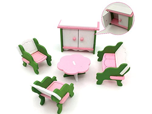 -. Title : Dollhouse Furniture Set, Miniature Dollhouse Accessory, Wooden Colorful Mini Furniture for Family Living Scenario Pretend Play, Living Room/Kitchen/Bathroom/Kids'Room/Dinning Room