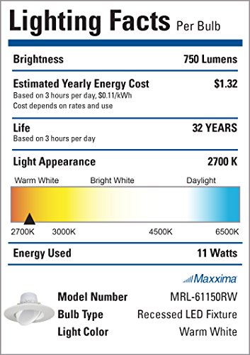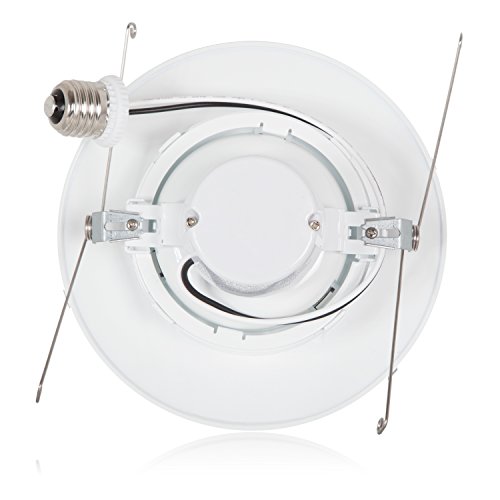 This 6" dimmable LED retrofit downlight fixture is the perfect replacement for your ceiling gimbal lights. With a rotatable eyeball that also is directional you are able to focus the light in any direction you need. This warm white (2700K) fixture is a 75 watt equivalent but only uses 11 watts of energy, while outputting 750 lumens of light. With the straight wire E26 connection you can screw right into the base of your standard 6 inch housing canFeature