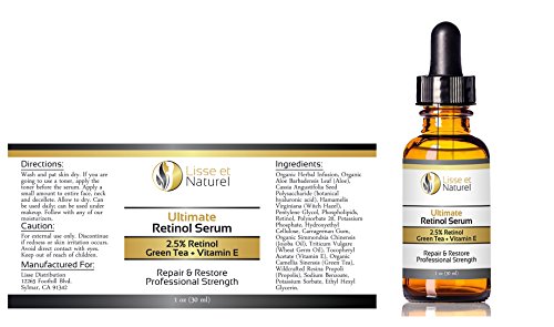 -. Feature : Natural & Organic - Free From Harsh Chemicals - No Fragrances Or Alcohol / MADE IN THE USA - Lisse et Naturel's products are formulated right here in the USA in an FDA registered laboratory and are never tested on animals - cruelty free / 3 Pack Contains - Vitamin C Serum, Hyaluronic Acid Serum, 2.5% Retinol Serum / For Brighter Healthier Looking Skin / 100% Satisfaction Guarantee