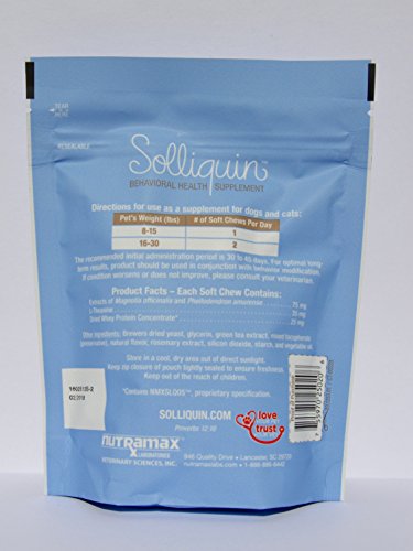-. Title : Solliquin Anxiety/Calming Treats for dogs 8-30 pounds and cats over 8 pounds