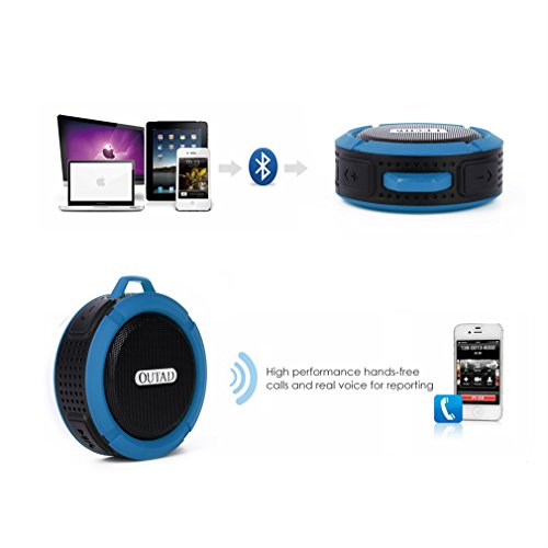 Shower Speaker, OUTAD C6 Portable Wireless Bluetooth Waterproof Speaker 5W Drive Bult-in Microphone,Hand-Free Speaker, Removable Suction Cup and Snap Hook (Blue)