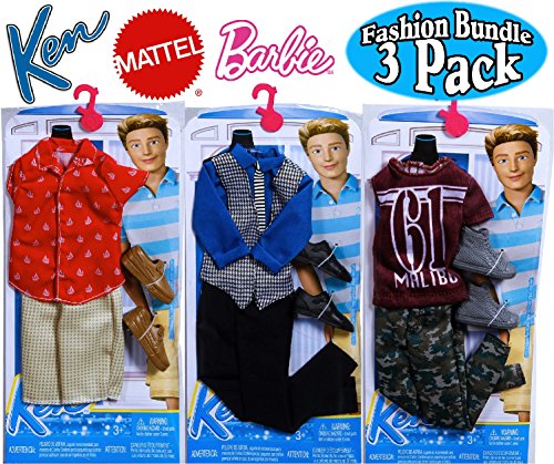 Barbie Ken Fashion Pack Outfits "Summer", "Business" & "Camouflage" Gift Set Bundle - 3 Pack, is AWESOME! Dress Ken doll (sold separately) in a complete look that's right on trend! Each dashing fashion set includes a trendy top, bold bottom and sleek shoes. Ken can put an outfit together for any occasion with casual ease and cool style. Clothing captures today's trends with cool colors, prints and accents. Makes a great gift & is perfect for schools, party favors, stocking stuffers, baskets and so much more! For Ages 3 and up - Fun for the whole family! - Perfect addition to any Barbie collection!Feature