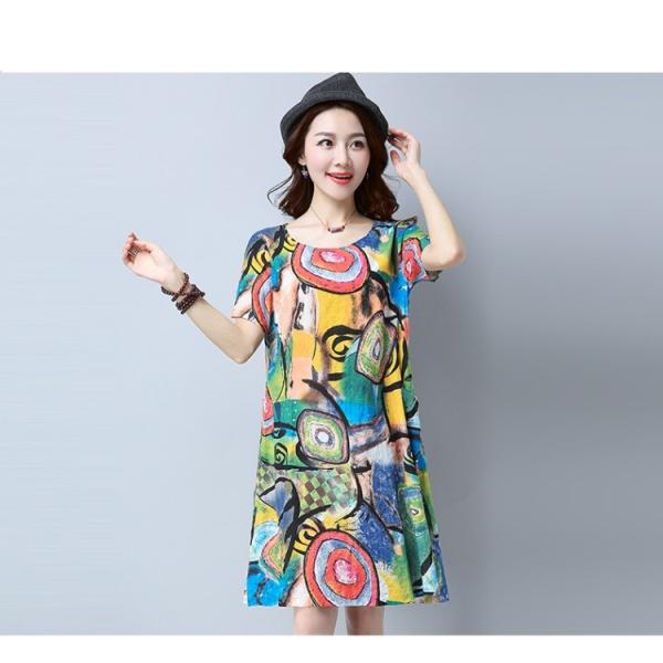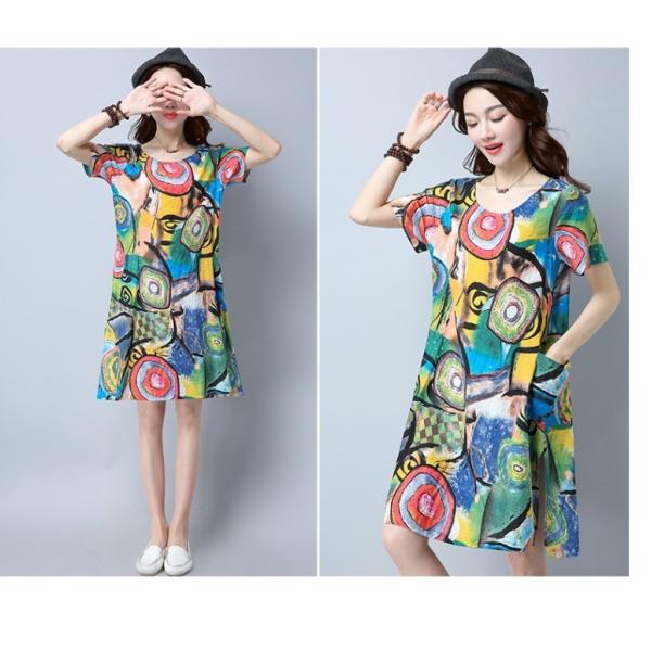 鮮やかなプリントデザインのワンピースです。