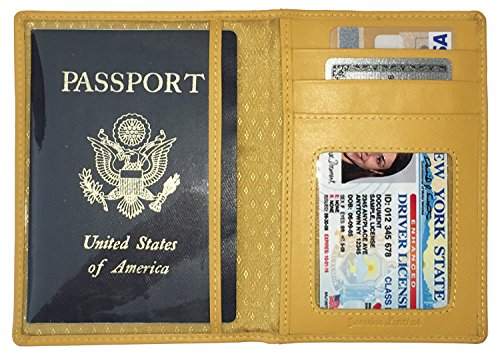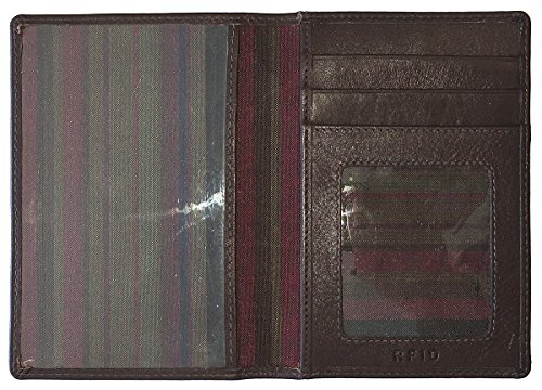 -. Feature : Genuine leather passport wallet / 2 credit card slots and 1 clear ID window slot / Contains advanced RFB (Radio Frequency Blocking) technology. / Dimensions: 4" x 5.75" closed