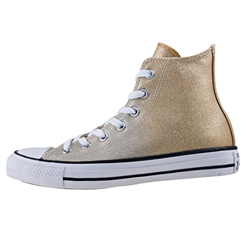 Binding : Apparel Product Description The Womens Chuck Taylor All Star Hi from Converse combines a Synthetic upper with a durable Rubber sole. These Trainers feature Lace-up fastening, cushioned insole and Textile lining. Finished with Converse branding, the style 159601C comes in a Gold colourway. 0