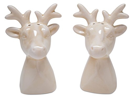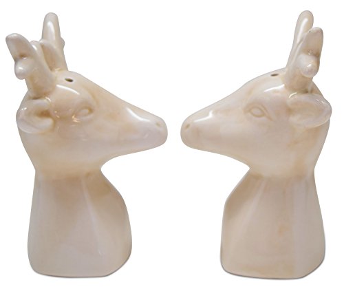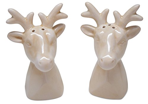 Dolomite Ivory Angular Modern Reindeer Deer Bust Salt and Pepper Shaker Set of 2