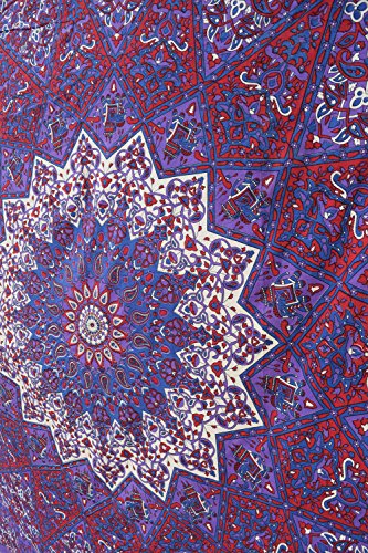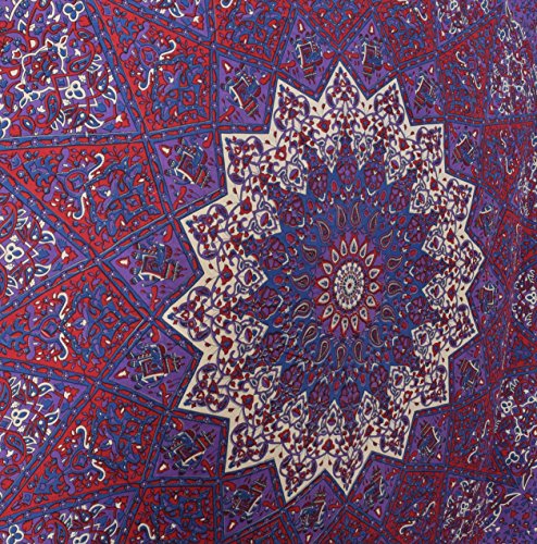 POPULAR HANDICRAFTS HIPPIE KALEIDOSCOPIC STAR INTRICATE FLORAL DESIGN INDIAN BEDSPREAD TAPESTRY 84X90 INCHES,(215CMSX230CMS) PURPLE RED