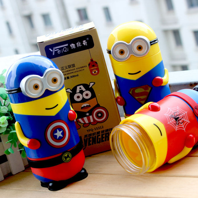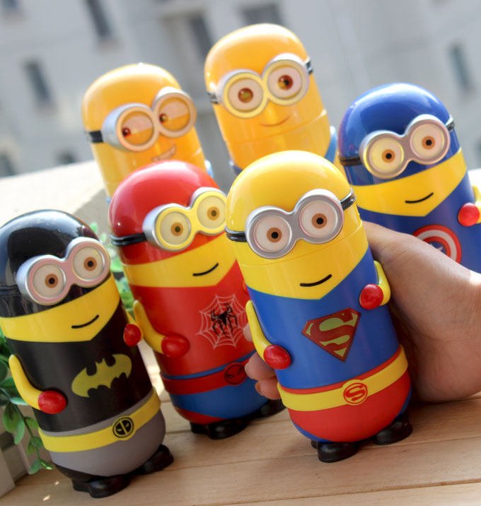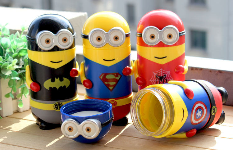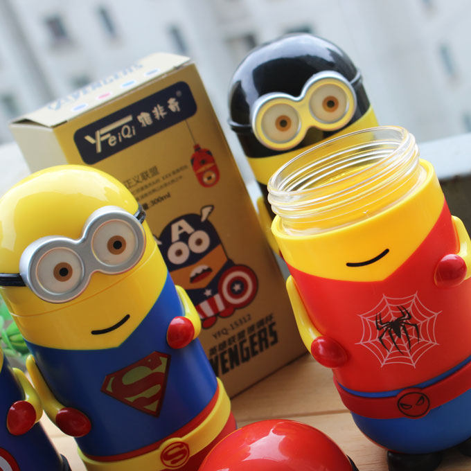 卡通小黄人玻璃杯便携带盖水杯学生儿童可爱带套耐热创意随行茶杯