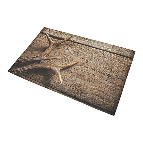 your-fantasia Deer Antlers Against Rustic Wooden Background Bath Doormat Non-slip Bath Mat Rug Floor Mat