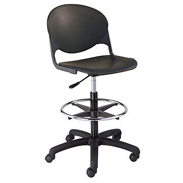 -. Feature : Polypropylene Drafting Stool / Pneumatic height adjustment Scratch resistant frame Durable polypropylene shell Five star base has dual wheel hooded casters Some assembly required