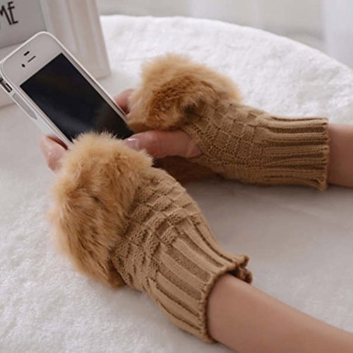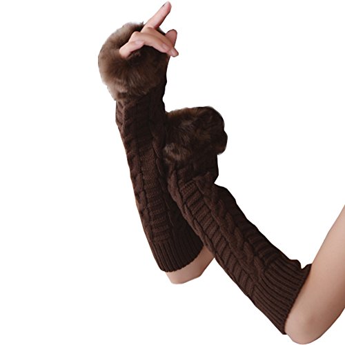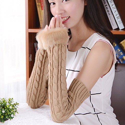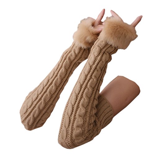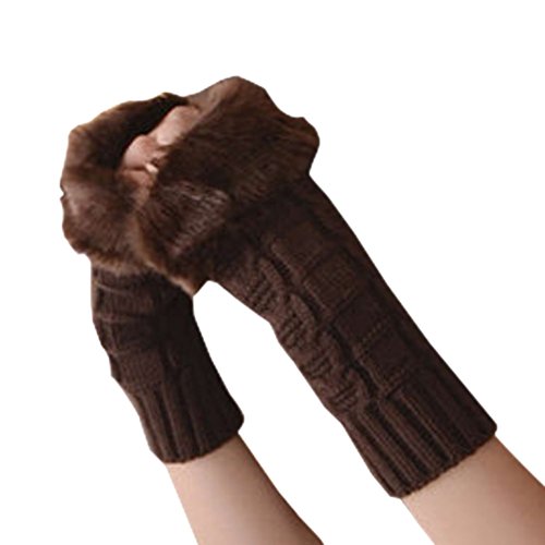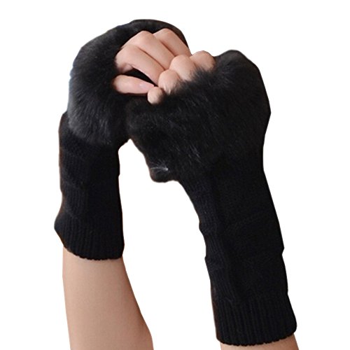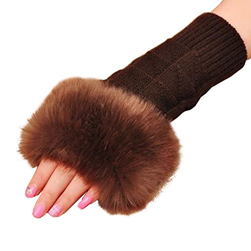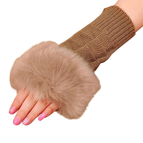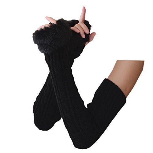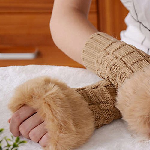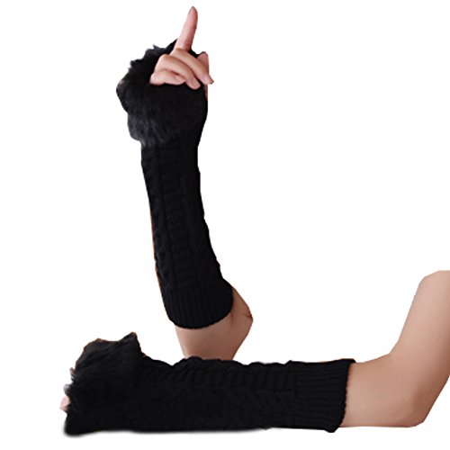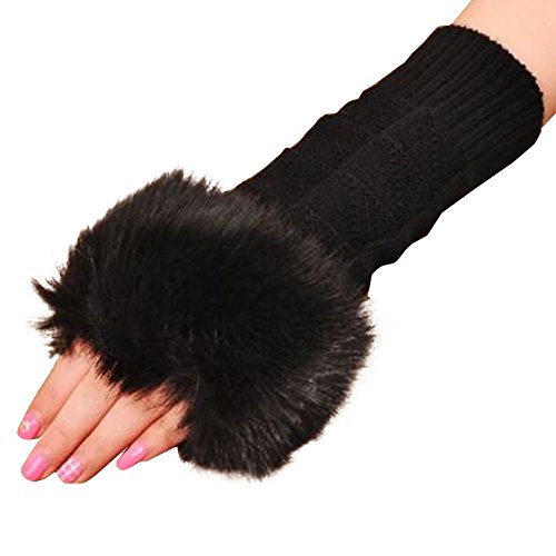 | (Funbase)/Accessories/Cold Weather Accessories/DIRECT FROM USA/Women Girls Solid Knit Mitten Faux Fur Wrist Half Finger Winter Outdoor Gloves(Short/Long/Elbow) |
