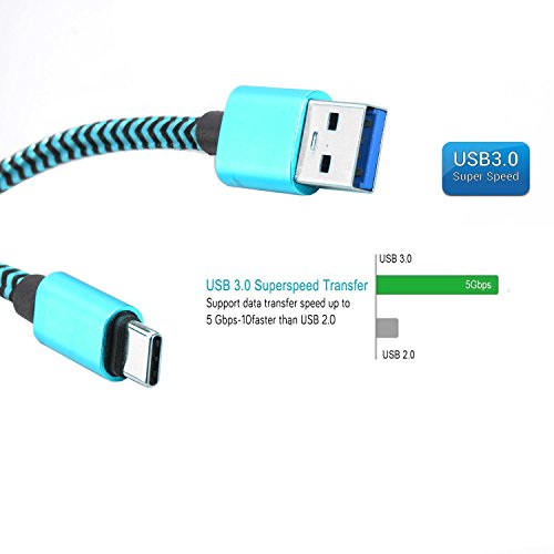USB Type C 3.0 Cable Long Braided Blue