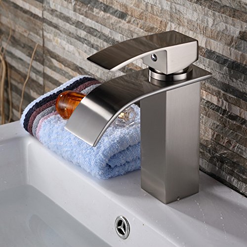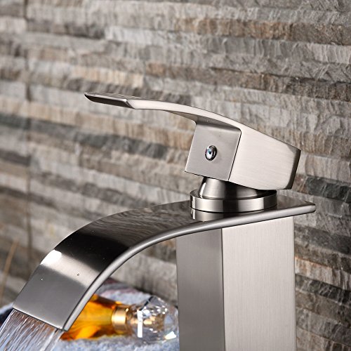 - Title : Yodel Stainless Steel Single Handle Waterfall Bathroom Vanity Sink Faucet, Brushed Nickel