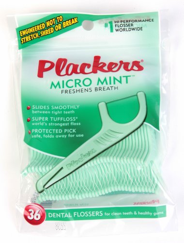 With its refreshing mint flavor, Plackers Micro Mint dental flossers give you that ultimate fresh, clean feeling. And with its Super Tuffloss hi-performance floss, removing plaque and debris from even the tightest teeth is a breeze. Feature unique handle design for comfortable grip to floss. Set of 36 dental flossers.Feature