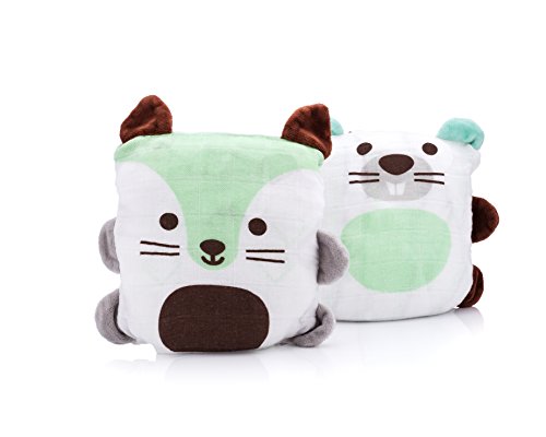 Ubbi Cotton Muslin Blanket Buddies: 2-in-1 Convertible Stuffed Animal and Blanket, Set of Two, Beaver/Fox