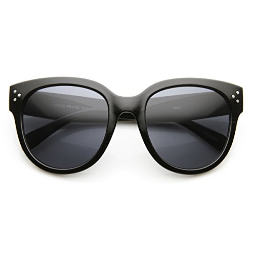 Large oversized horn rimmed sunglasses that feature high temples with three distinct rivets on each corner. The large oversized silhouette and subtle colors makes this a wonderful choice for the warm and sunny season!