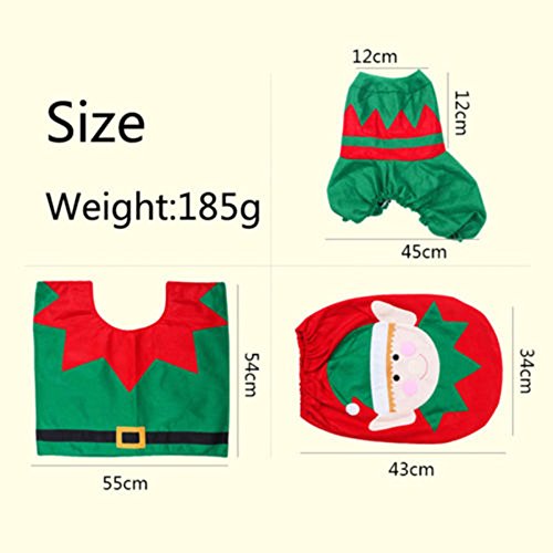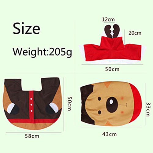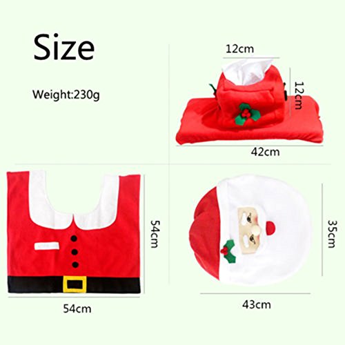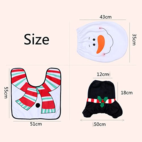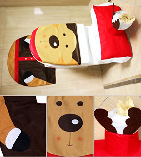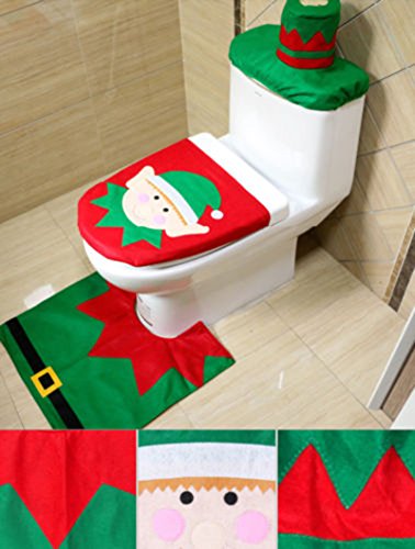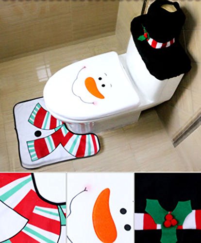 -. Brand : RUNSTAR -. Feature : Christmas Santa Bathroom Set - Happy Santa / Cute with a smiley face snowman to decorate your bathroom for Christmas holidays / Great addition to boost up your holiday spirit / Material: non-woven / pull flannel / Package:1 x Happy Santa Toilet Seat Set -. Label : RUNSTAR -. Manufacturer : RUNSTAR -. ProductGroup : Home -. ProductTypeName : HOME_BED_AND_BATH -. Publisher : RUNSTAR -. Studio : RUNSTAR -. Title : RUNSTAR 3 Pcs/set Happy Santa Toilet Seat Cover and Rug Bathroom Christmas Decorations