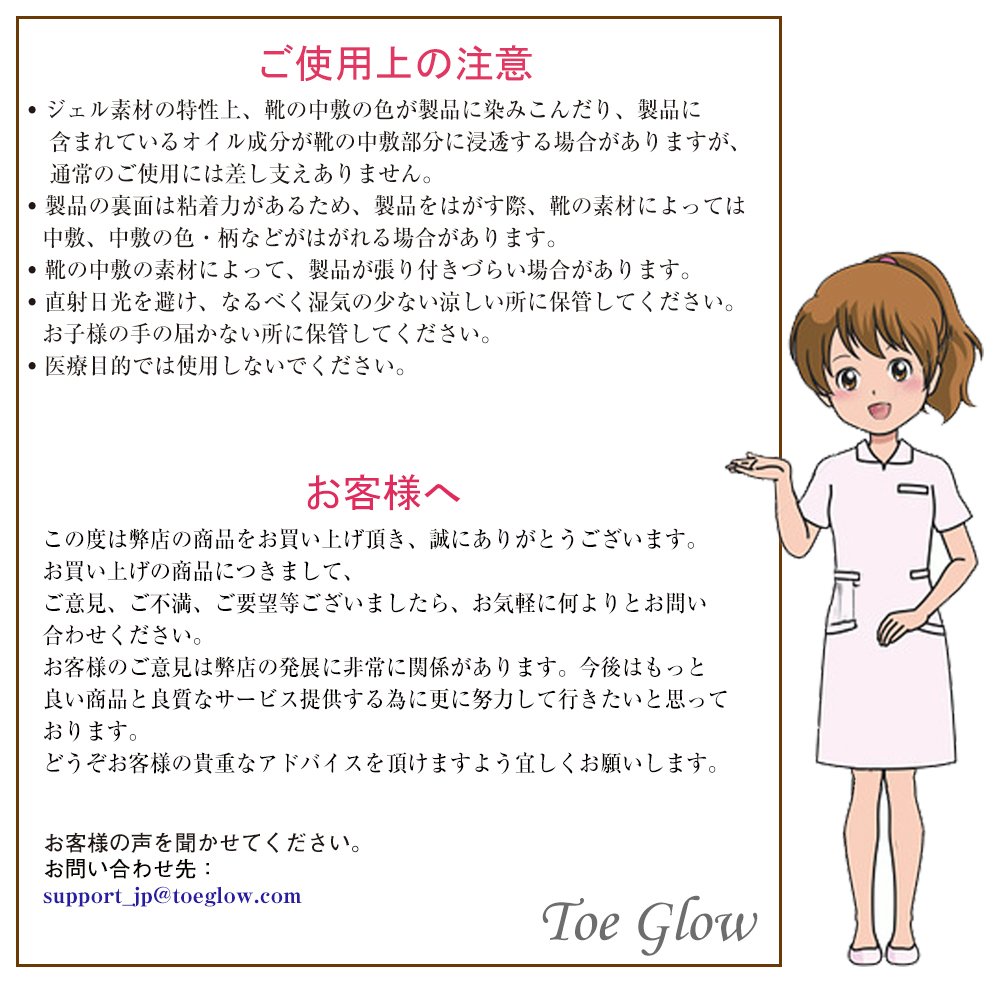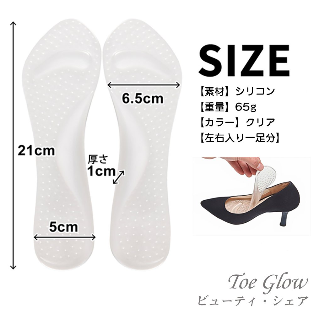 Clear and inconspicuous, the gel on the reverse side is sticky type so it will not shift even in the shoes.