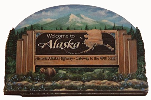 Alaska State Welcome Sign Wood Fridge Magnet 2