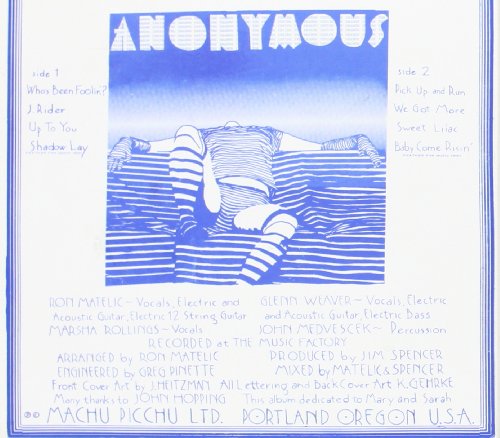 Digitally remastered edition of this privately pressed album. Originally released in 1976 in an edition of 300 copies, the sole album by Indianapolis' Anonymous stands today as a high-water mark in Rock 'n' Roll, combining the adventure of West Coast ballroom groups, the 12-string majesty of The Byrds, and breathtaking multi-part harmonies to forge something inimitable and one-of-a-kind, with powerful songs that pushed the limit and raised the bar at the same time. Long time top ten favorite with almost every head we know, a true classic recommended for everyone into amazing rock records of all varieties.This is the first officially licensed reissue of this classic in almost twenty years; issued with the group's full cooperation and assistance. It has been remastered and restored by Warren Defever for best-ever sound. Sleeve notes from Aaron Milenski (co-author of the essential reference guide The Acid Archives), and recollections from Ron Matelic, Anonymous' visionary songwriter. Comes in a digipak with 8 page booklet with complete lyrics and notes. Also available on LP.