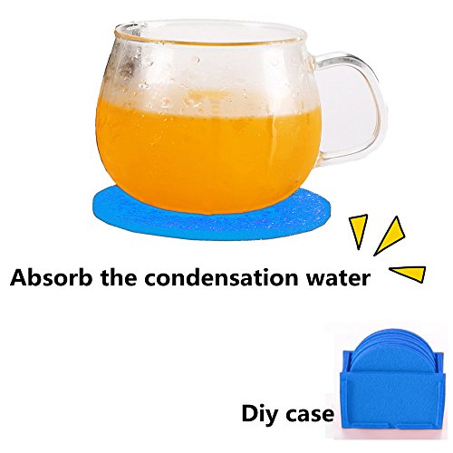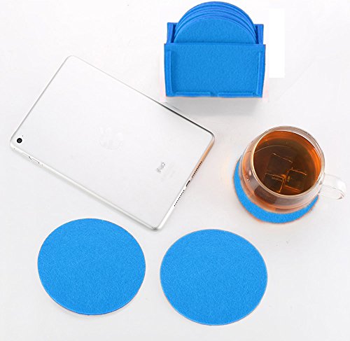 Protect Furniture From Water Marks & Damage - Good Grip, Felt Coasters with Holder Drink Coasters Absorbent Coasters for Drinks Cup Mat Coaster Set of 10 - Round (Blue) (PXR)