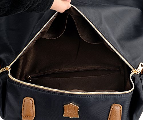 The Main compartment is open from the front zipper,inner wall zippered is perfect for ID cards and the 2 small open pockets is use for tickets, keys or other small things. One Back zippered pocket is not large but also has 2 small fabric pockets.