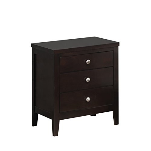 Studio : Antique Publisher : Antique Product Description The trendy antique black lily nightstand features three spacious drawers and a striking black finish. The tapered legs and eye-catching silver drawer handles add a stately aspect to the vintage design, while the top of the black nightstand provides ample space for a book, alarm clock and reading lamp. This black nightstand suits both heritage and contemporary bedroom designs. 0