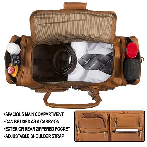 Studio : Muiska Publisher : Muiska Product Description The New York 22-inch leather duffel bag by Muiska is the perfect bag for a quick weekend getaway or as a carry-on for your in-flight needs. This handmade bag is crafted from 100% Vaquetta leather. Travel in style with this sleek and sophisticated executive duffel bag.