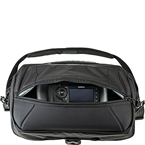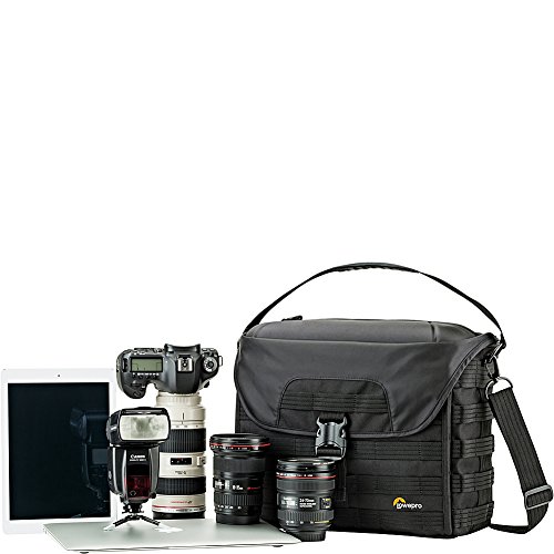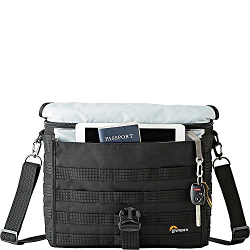 Shoulder bag includes modular accessories (zippered accessory case and two QR buckle attachment straps) to expand your capacity via exterior, MOLLE-style straps with SlipLock. Use straps to add a compact tripod, telescoping trekking poles or a light jacket to bottom of bag; or create a convenient and secure trolley attachment for smooth transport when used with a roller